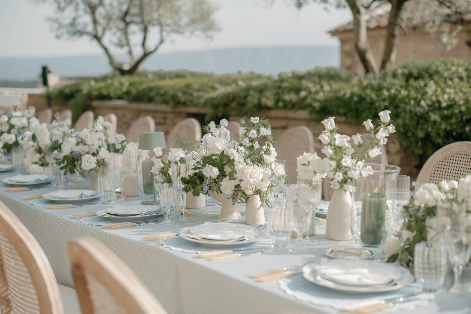 Nous fournissons de belles bougies avec des fleurs pour compléter l’embellissement de la table ainsi que certains éléments de décoration. Nous pouvons également vous recommander plusieurs sociétés de location qui ont plus d'articles de décoration si vous en avez besoin.