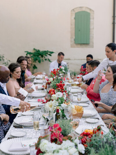 Valentina and Adrian’s wedding unfolded in the heart of Provence, blending timeless elegance with natural charm. The celebrations began at the historic Hôtel d’Europe, bathed in a warm Provençal palette of yellow, orange, and soft lavender. The rehearsal dinner captured the spirit of summer in Provence with tomato red, lavender, and natural greens, creating an intimate and chic countryside atmosphere. The wedding at Château de Tourreau embraced a refined, timeless aesthetic — a white and green ceremony followed by a neutral-toned reception filled with texture and thoughtful details, reflecting the bride’s eye as an interior designer. The weekend concluded with a relaxed poolside brunch in a summery palette of blue and yellow — the perfect closing to a beautiful celebration.